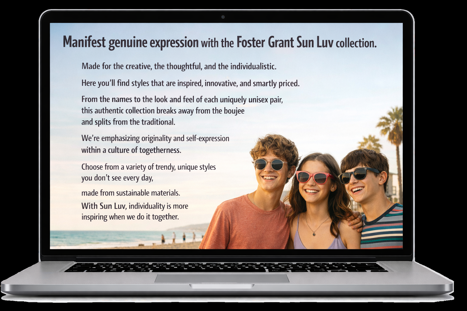 A new, younger audience for Foster Grant, including Gen Z and younger Millennials. Thoughtful, creative, and social, they balance trends with a strong sense of self-expression.