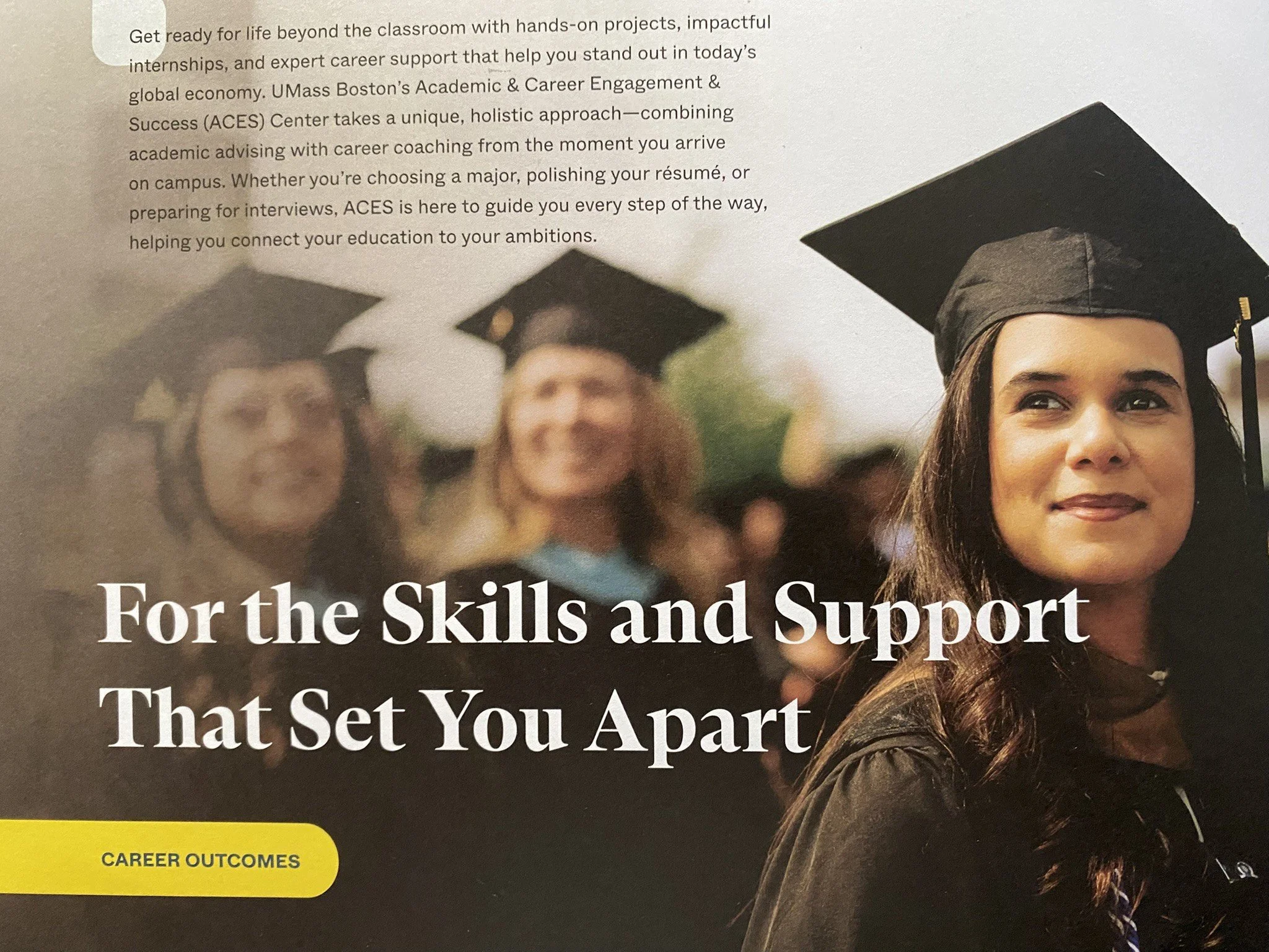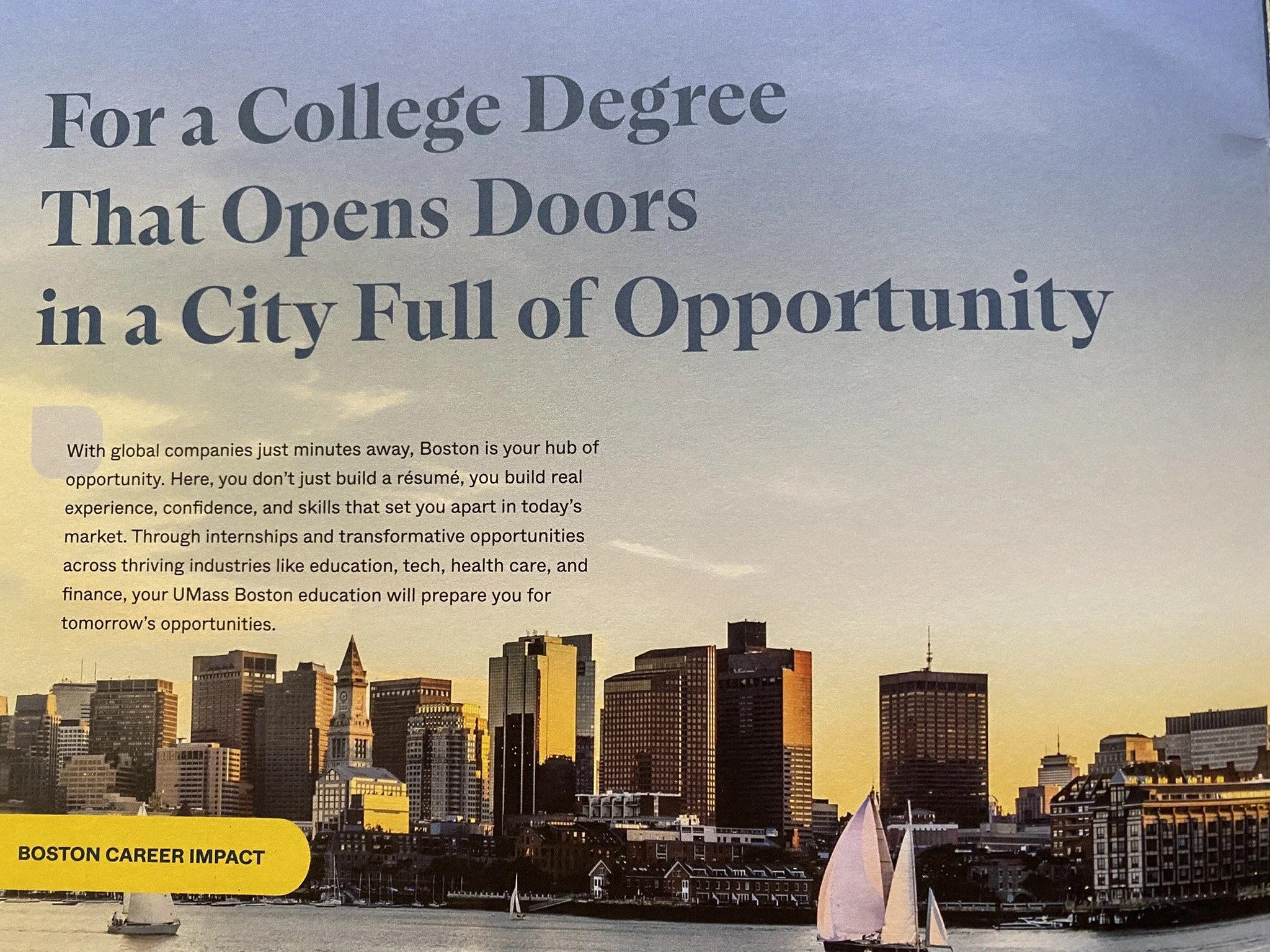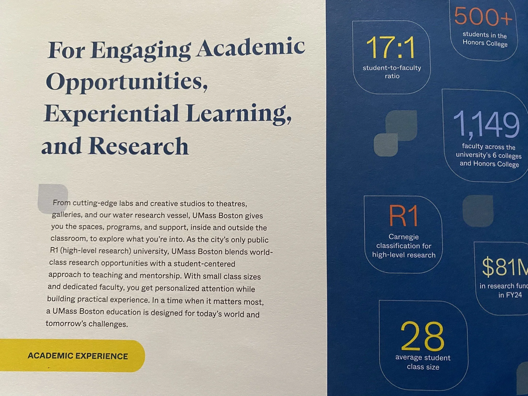 I helped shape the vision for this UMass Boston search piece, starting with early concepts that guided the creative direction for the design team and writing all of the headlines and body copy. Each headline features a “for” statement that ties back to the university’s “For the Times” tagline.